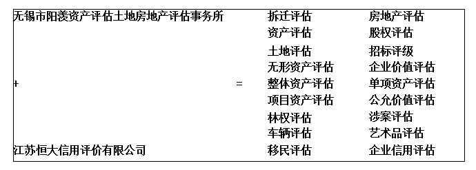 无锡市阳羡资产评估土地房地产评估事务所成立于1995年,从事专业评估已有二十多年的历史。具备财政部颁发的资产评估资质,住建部颁发的房地产评估二级资质,人总行认可的信用评级和招标评级,为江苏省资产评估协会直属会员。中国国内具有实力资产评估机构。